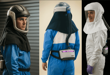 Powered Air-purifying Respirator PAPR Helmet with HEPA particle filter cartridge.