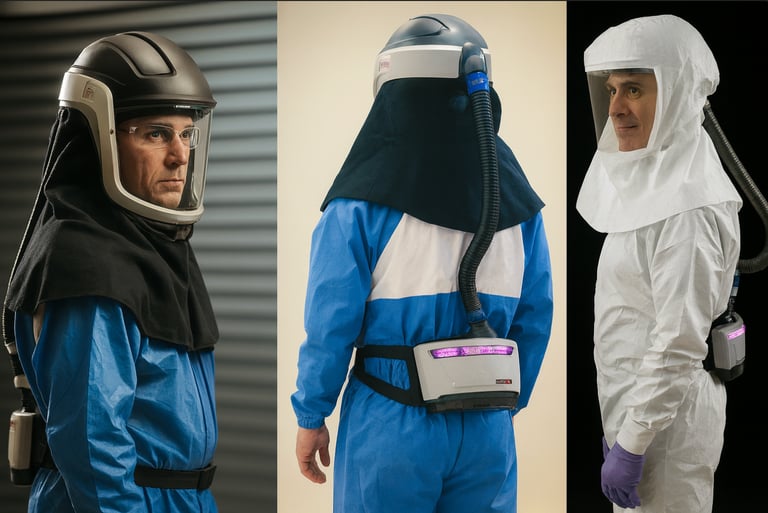 Powered Air-purifying Respirator PAPR with soft-hood headgear.